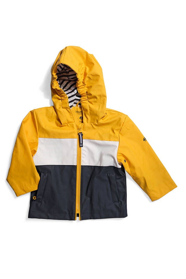 Regenjasje met streepjesvoering, een hippe must-have voor kleintjes van 12 maanden.Met deze wind- en waterdichte regenjas met fijne voering is je kindje beschermd tegen regen en wind.